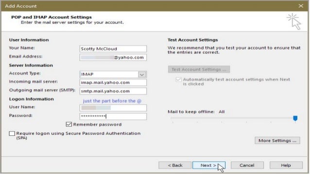 - The POP3 should be selected for the Incoming mail server (pop.mail.yahoo.com) and SMTP for the outgoing mail server (smtp.mail.yahoo.com).
